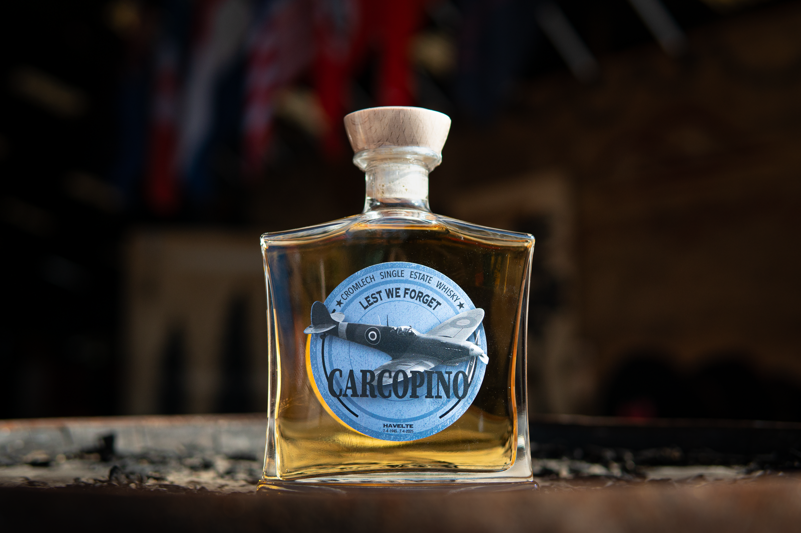 Dit keer ben ik teruggekeerd naar Drumlin Distillery om productfoto’s te maken van hun nieuwste whisky. Deze whisky is opgedragen aan een moedige Fransman, François d’ Aligny die met zijn Spitfire, genaamd “Carcopino”, op 7 april 1945 crashte vlakbij waar nu Drumlin Distillery is gevestigd.